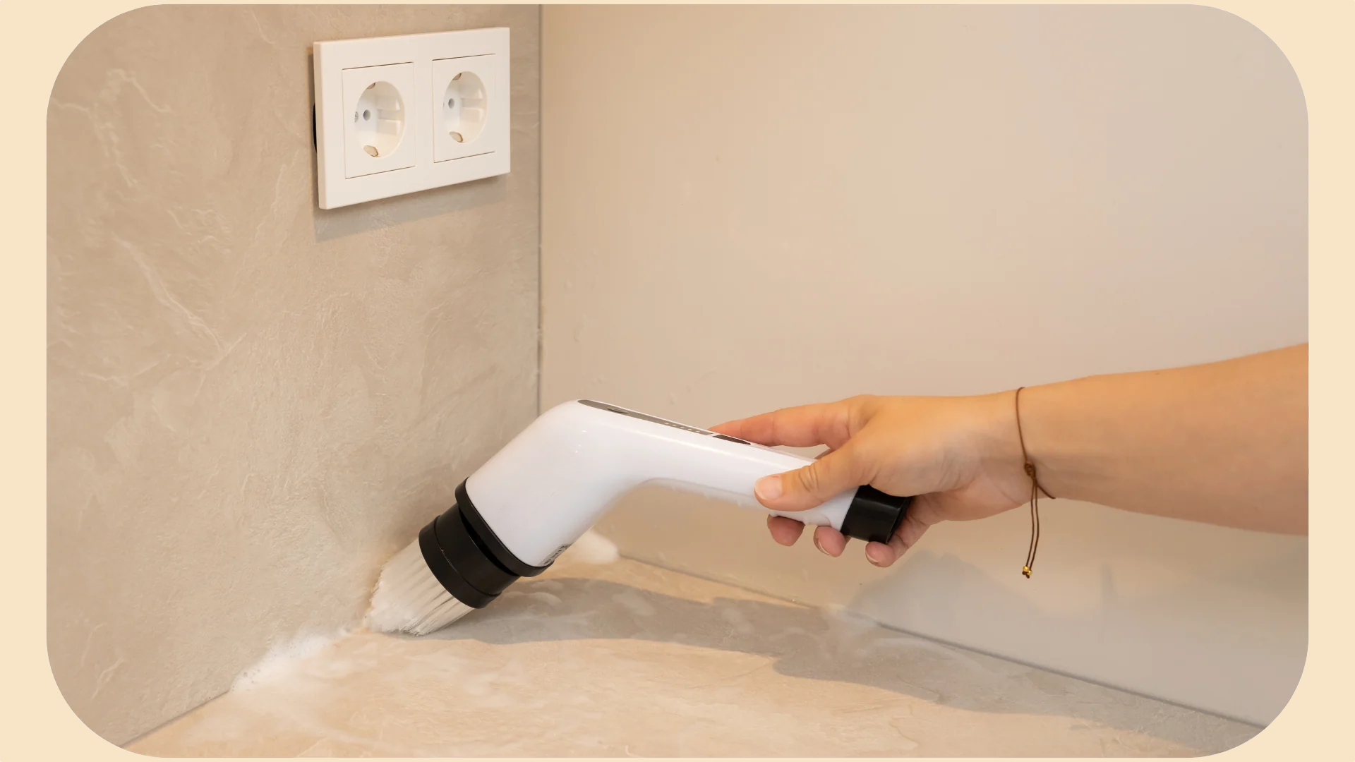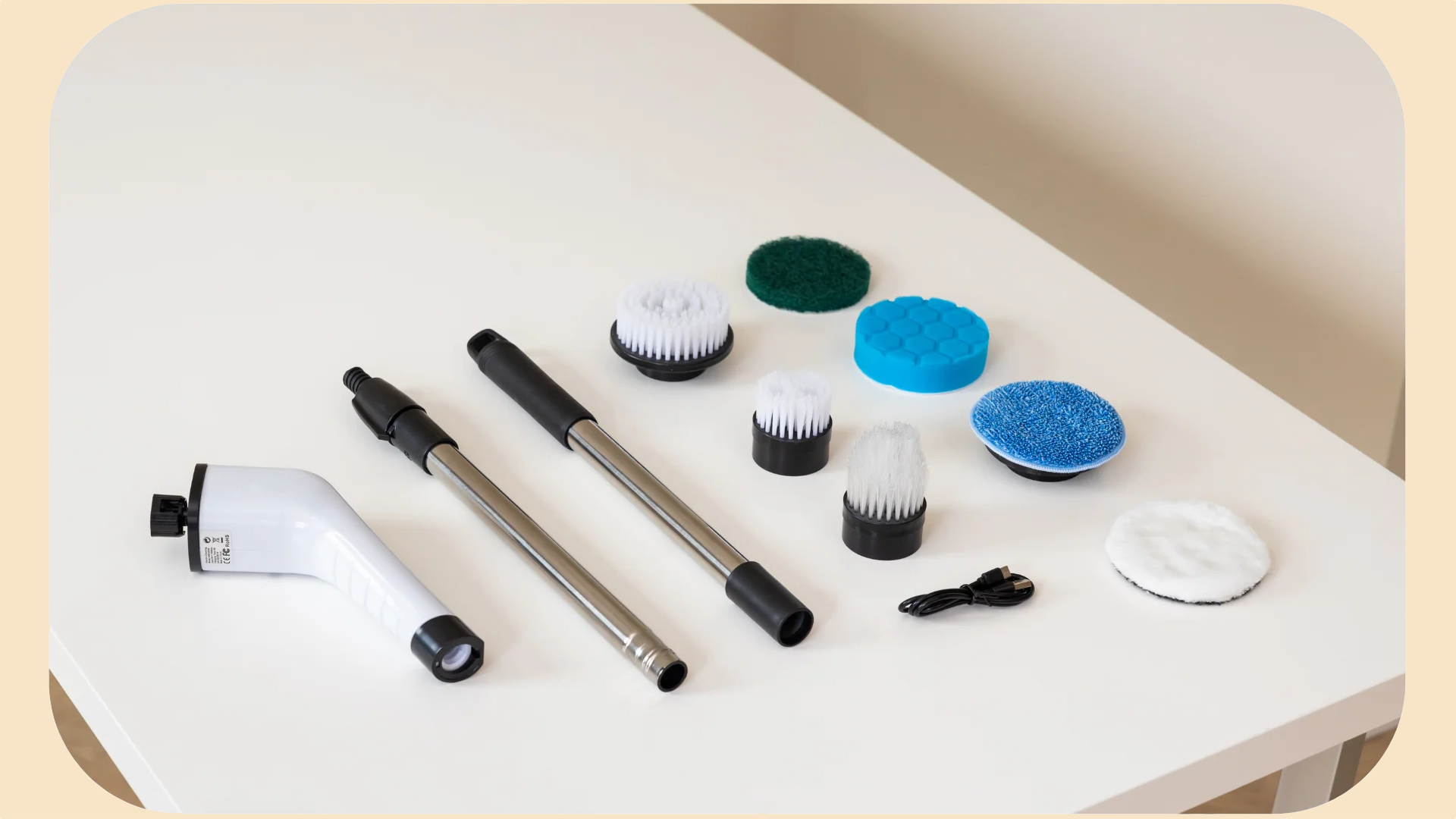 The Electric Cleaning Brush comes with interchangeable heads that switch in seconds, adapting from grout lines to smooth countertops with precision